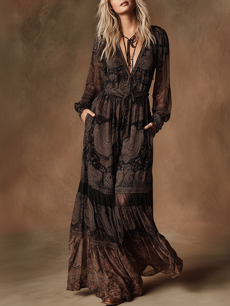 Boho Vintage Lace Flow Midnight Maxi Dress