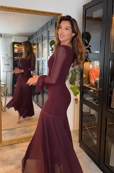 Sexy Elegant U-Neck Stitching Long-Sleeved Dress
