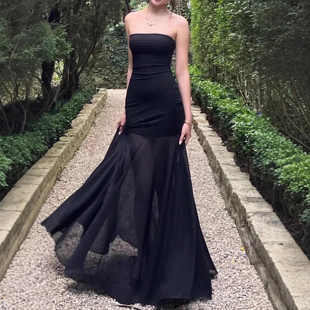 Sexy Tube Top Solid Color Chiffon Sleeveless Stitching Dress