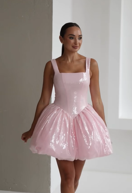 Sexy U Collar Waist Sequined Pettiskirt