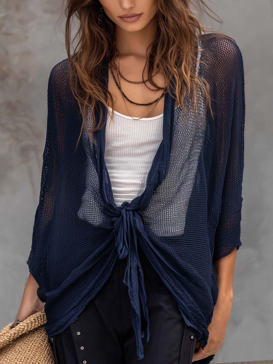 Vintage Sheer Knit Blouse With Three-quarter Sleeves